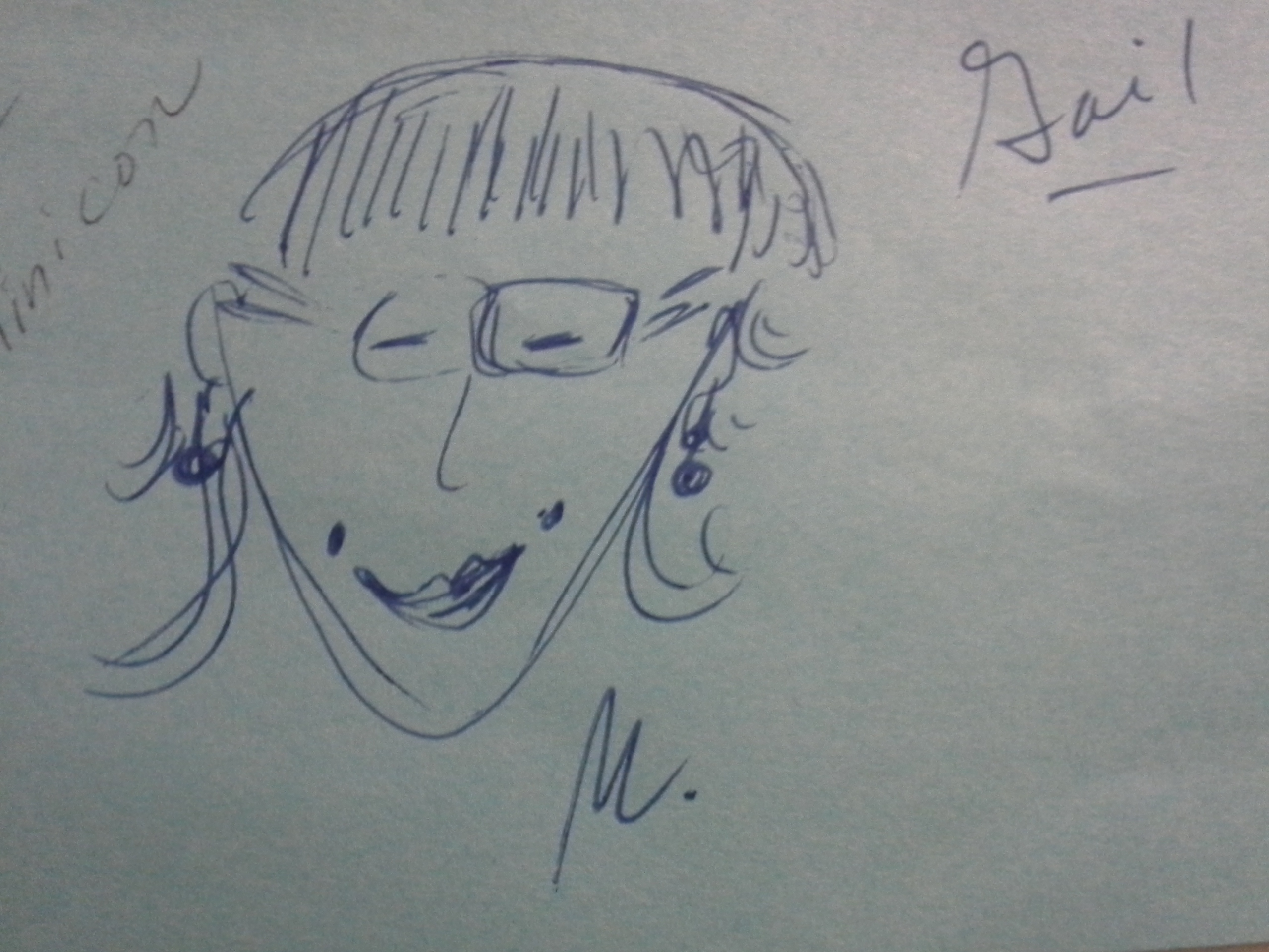 And finally, at the end of the three sessions we met in the Auditorium where Ryan Bretag, @ryanbretag on Twitter, gave a really interesting and thoughtful presentation which you can watch here. During the presentation we were given sixty seconds to draw a portrait of the person next to us and then post them on Twitter as a selfie. Here is a portrait of me, by Marisol.