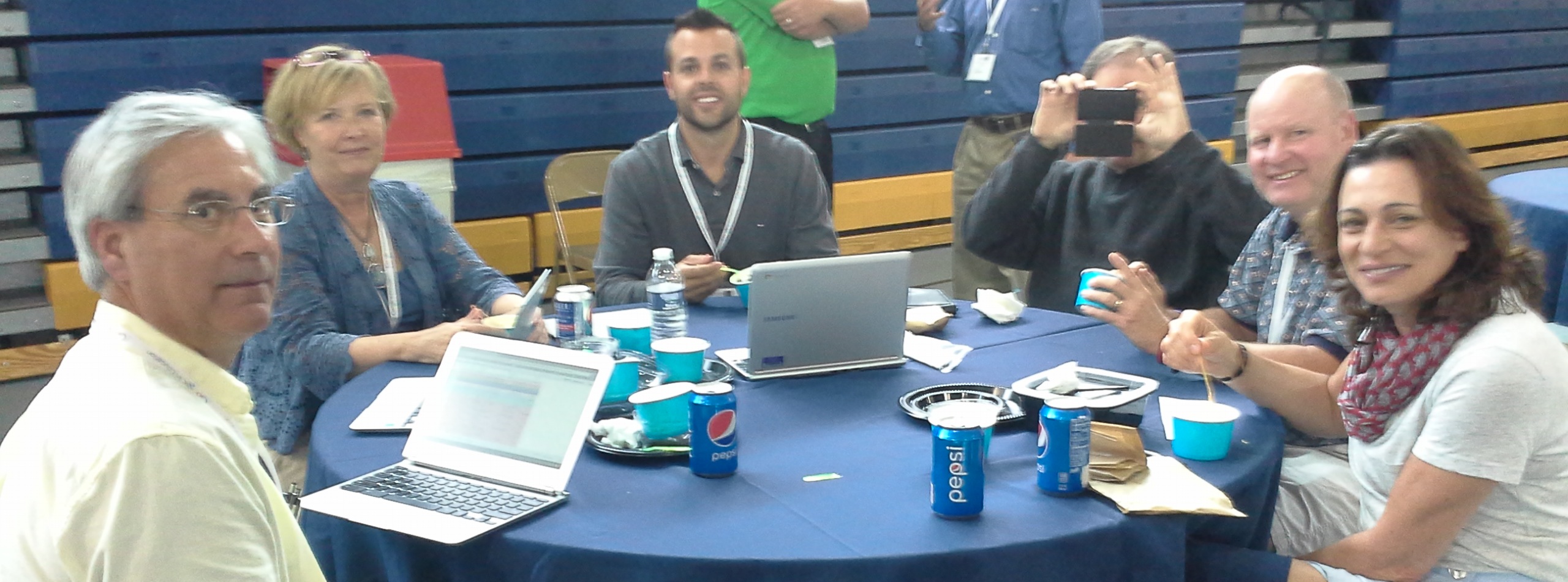 But I didn’t have an hour for reflection and before I knew it there was Jimmy Casas telling us we should “Strive to Make an Impact Everyday!” Jimmy doesn’t really have to strive to make an impact. It comes to him naturally and I loved his thoughts about creating a community within the school and how everyone at Bettendorf High School is included in the community no matter what their role within the school happens to be. For instance, take a peak at Joni Bruecken’s post on their blog to see what a secretary working in the attendance office had to share.
